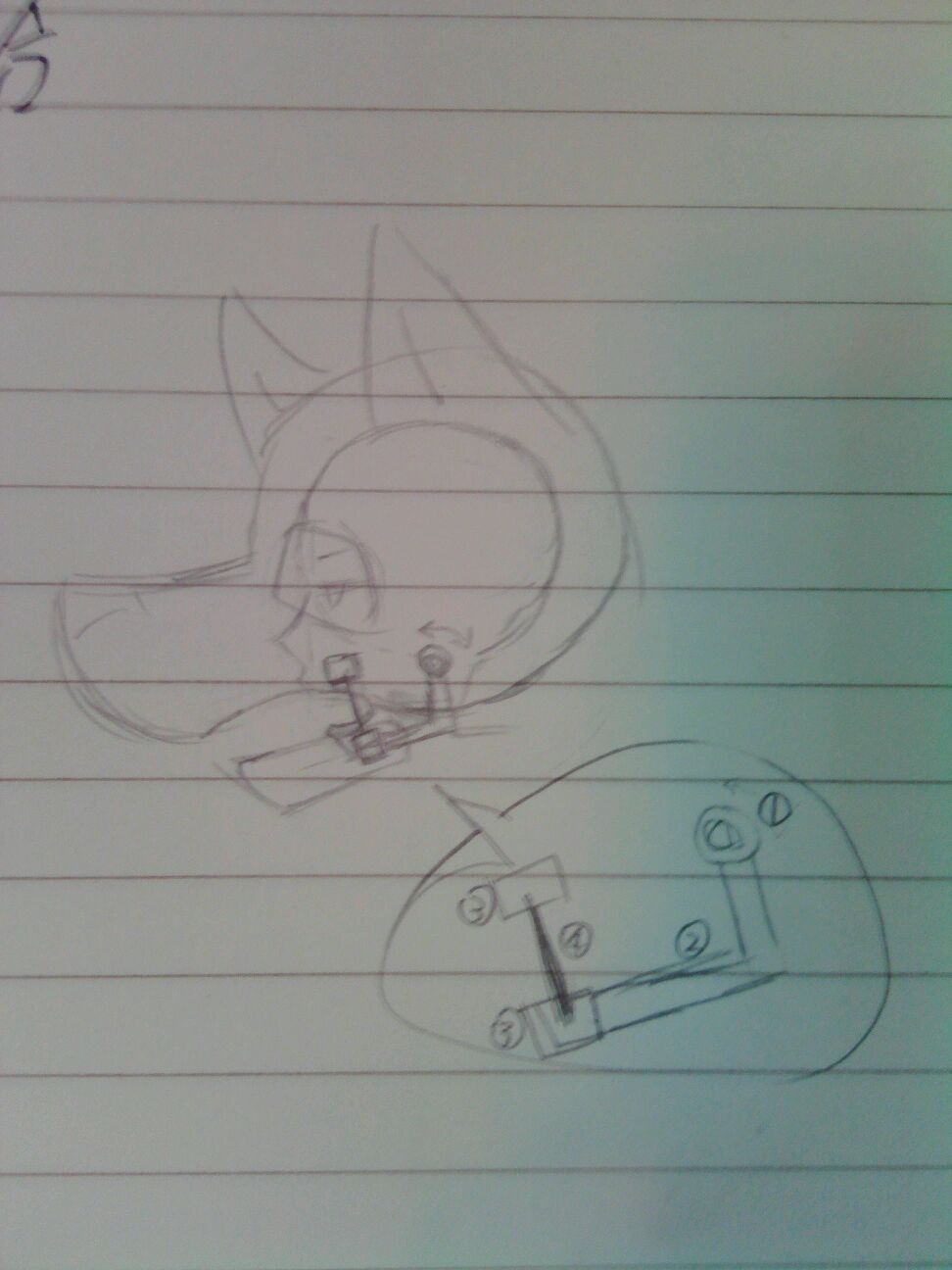 后脑勺向后,按动按钮,按钮后的铁丝也向后,铁丝上的线被拽动,另一端连着嘴,因为线被拽动绷紧而张开(爪机抽了)