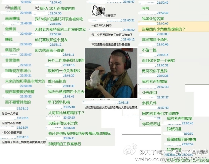 全部是由直接的受害人跟他本人的发言,没有半点,当然除了吧那些人的名字涂掉之外没有半点作假,我们的目的就是揭开这个败类的面具,让大家看清这个败类的嘴脸,如果打扰到大家我在这里先说声对不起,但是因为受害的不是一个两个,数额也不少,时间也都可以以年来算,所以我们觉得完全有必要告知大家,接下来是不分图片跟微博同步的解释。。大家也可以去我的这个微博去看更详细的,当然也欢迎转发,让更多的兽知道这个人渣,谢谢大家。