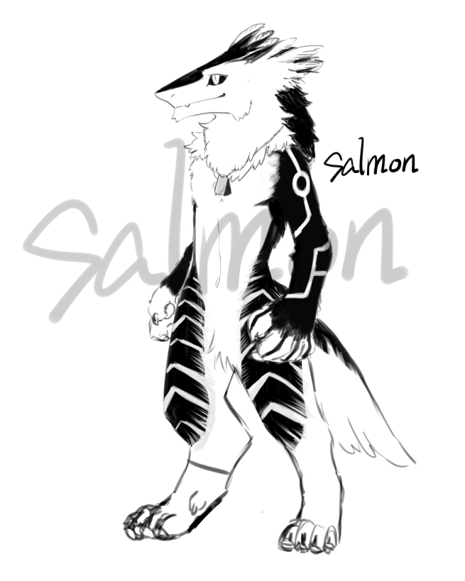 我的小伙伴叫Salmon(三文鱼),读做赛门,是个相当帅气的家伙。明明有着鲨狗的战斗血统,却执着地热爱画画。