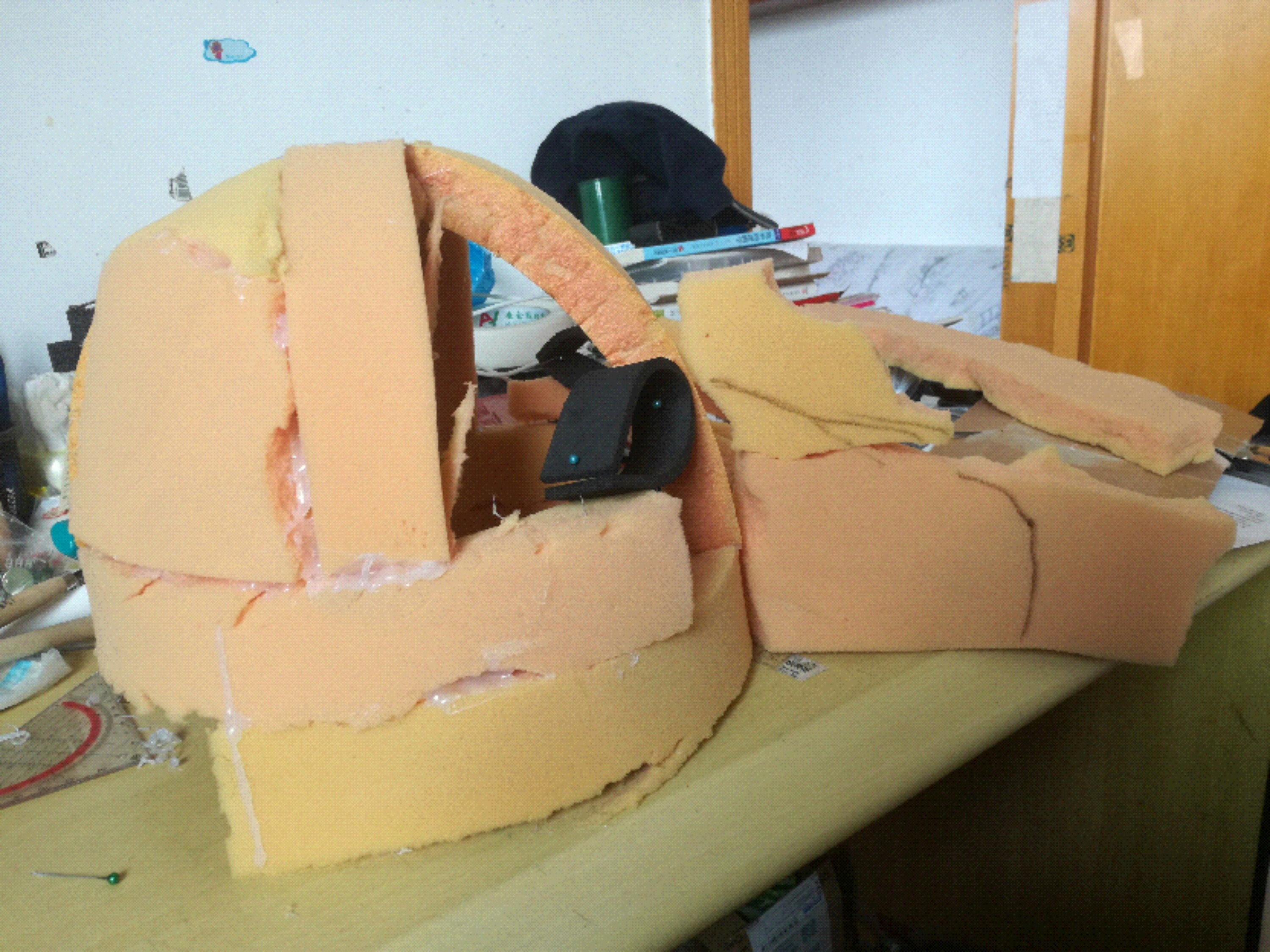 着次很明显吻部作宽了。等我考完期中给他泡一下水,退毛。这个时候顺便修一下吻部的宽带和大小(感觉。。。自己脸过了一个假期长胖了。。)等一下肯定是海绵变小了,熊熊才不会长胖呢(叉腰)