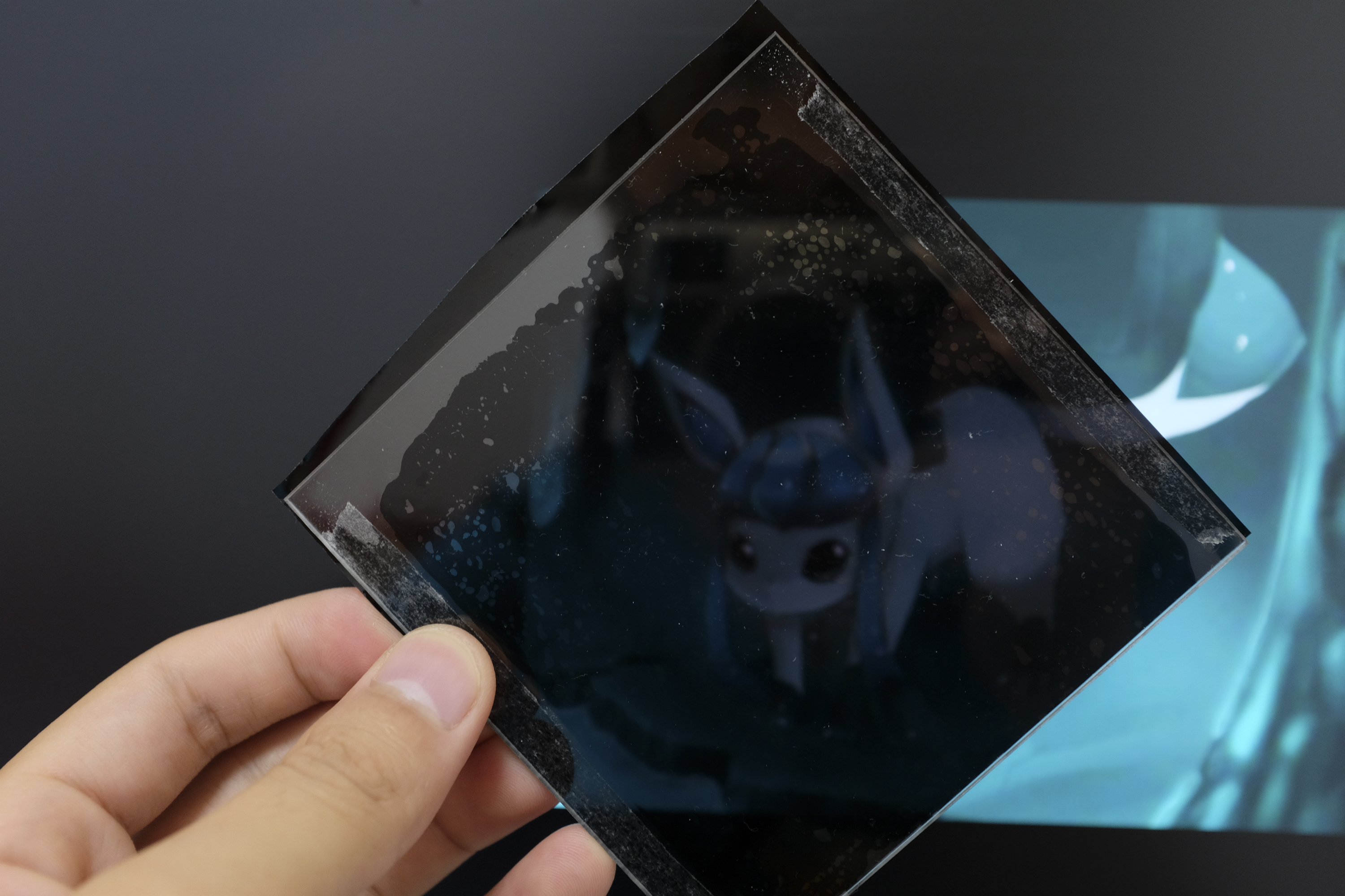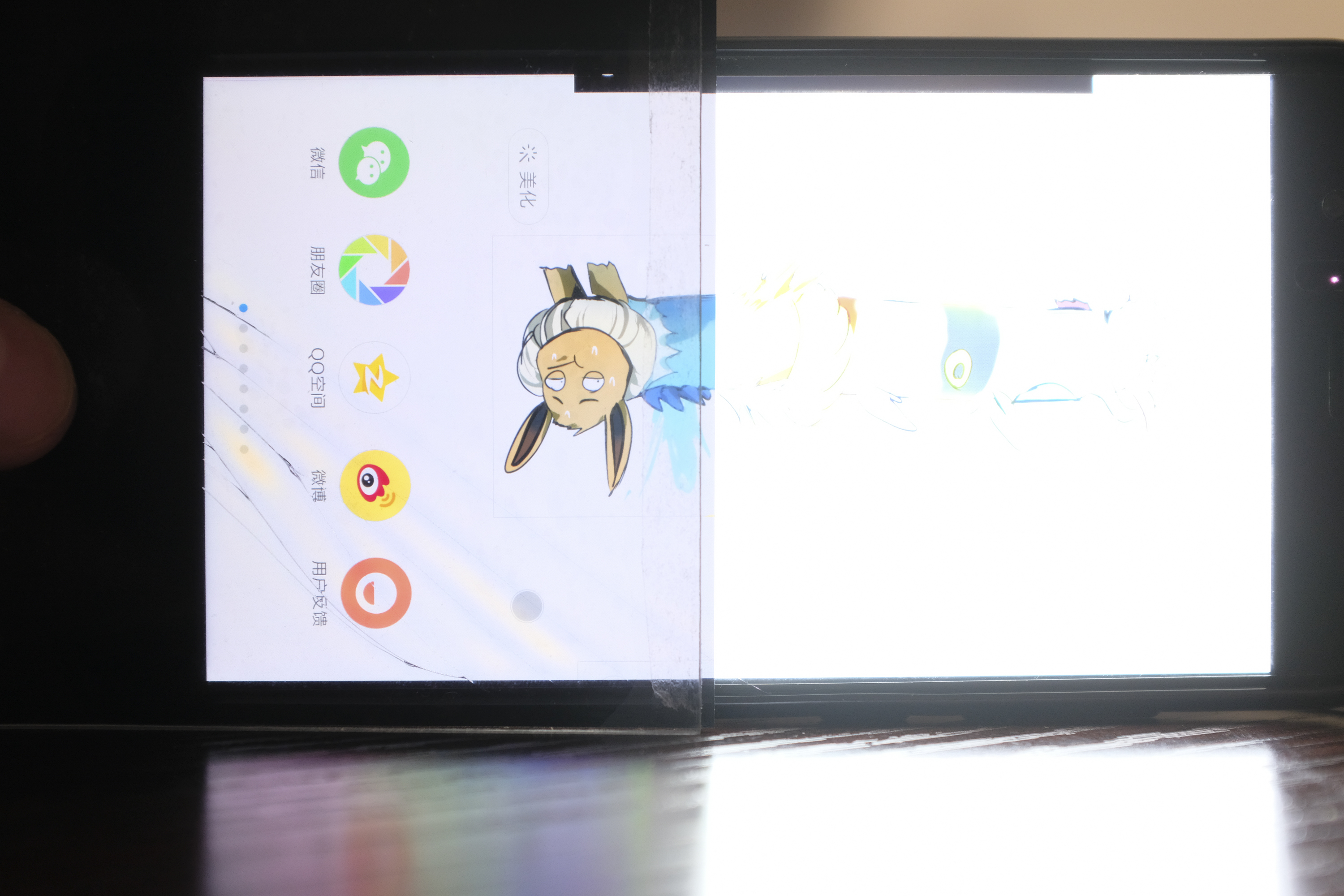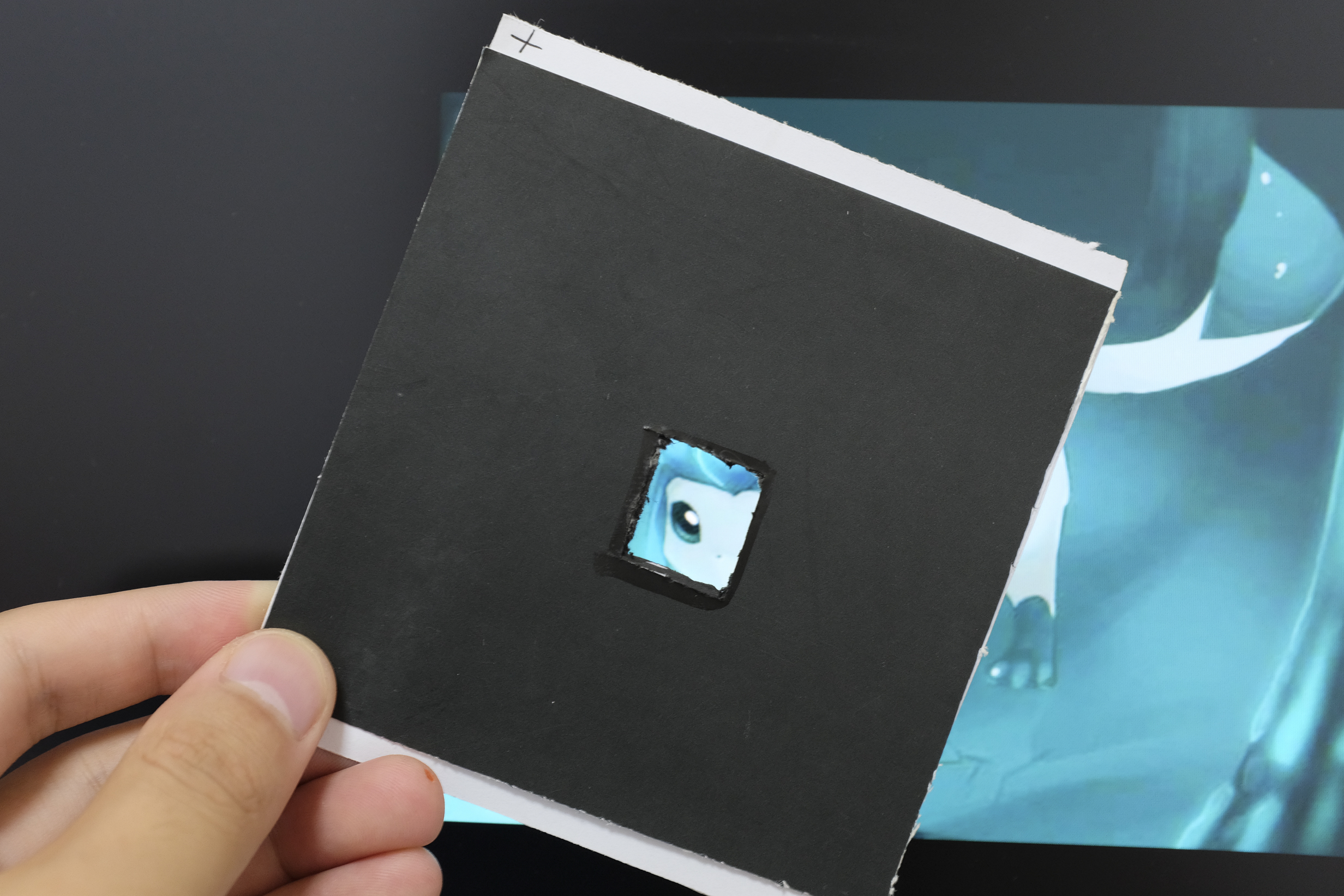 最后来看看实验效果,先是显示效果,第一张是手机直接作为光源的效果,当然们最终使用的光源应该会比手机亮很多,毕竟小米6的极限亮度就不高,何况这还是全黑环境,手机根本没法功率全开,如果能有手电的亮度,那效果想必是极好的