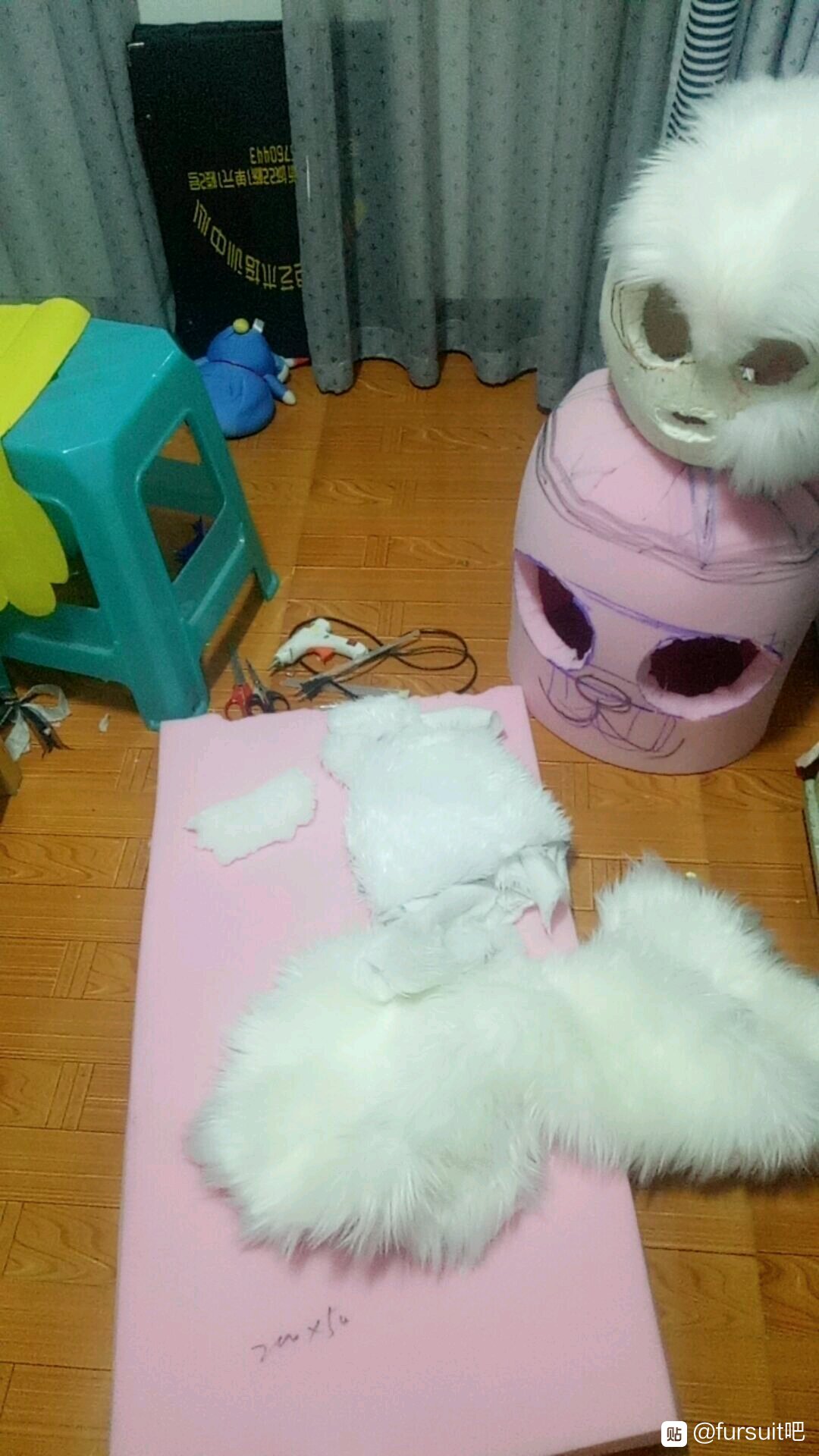 这里是在手工坊拍的,所以没有大头针和胶带,参考就行