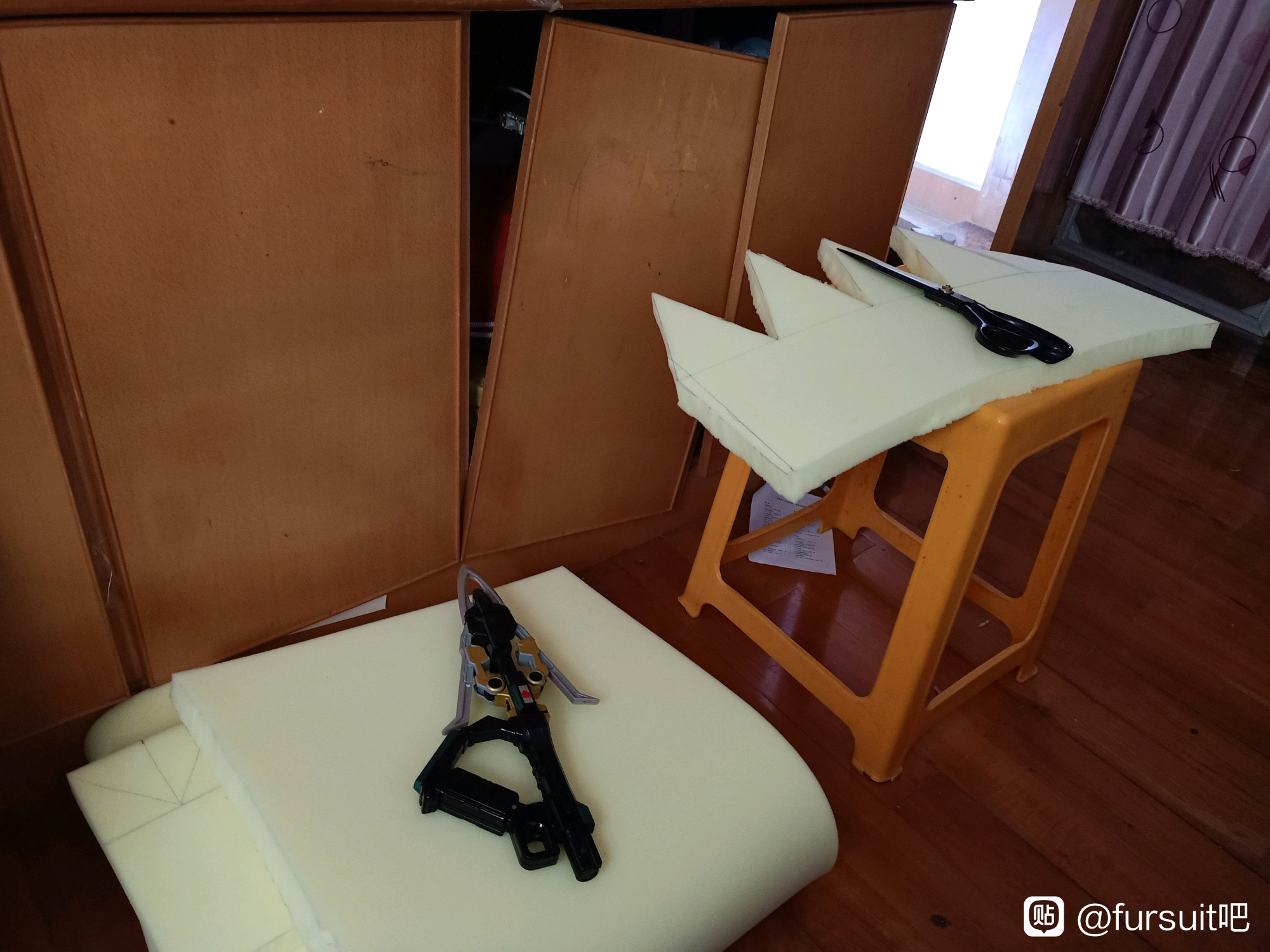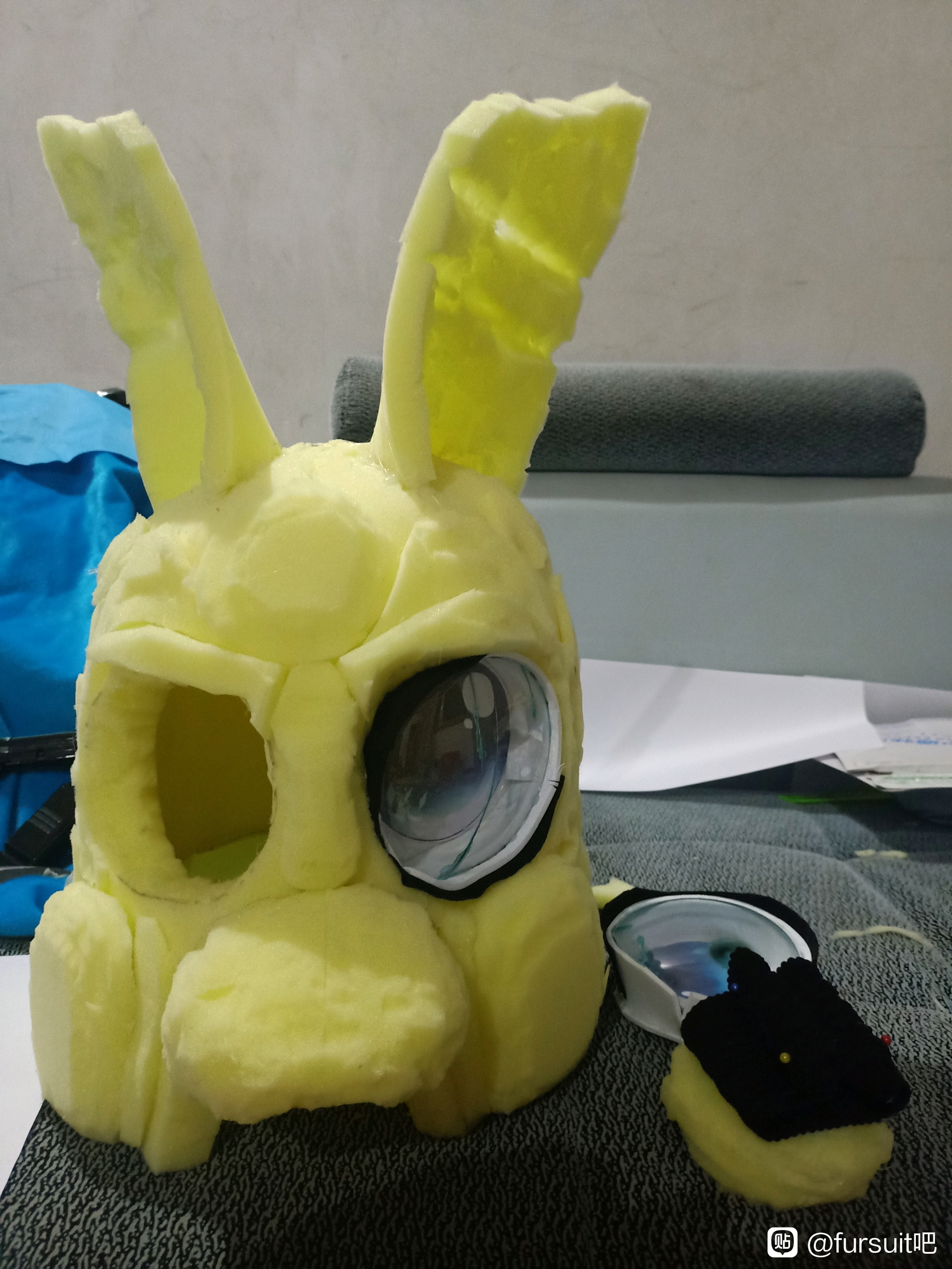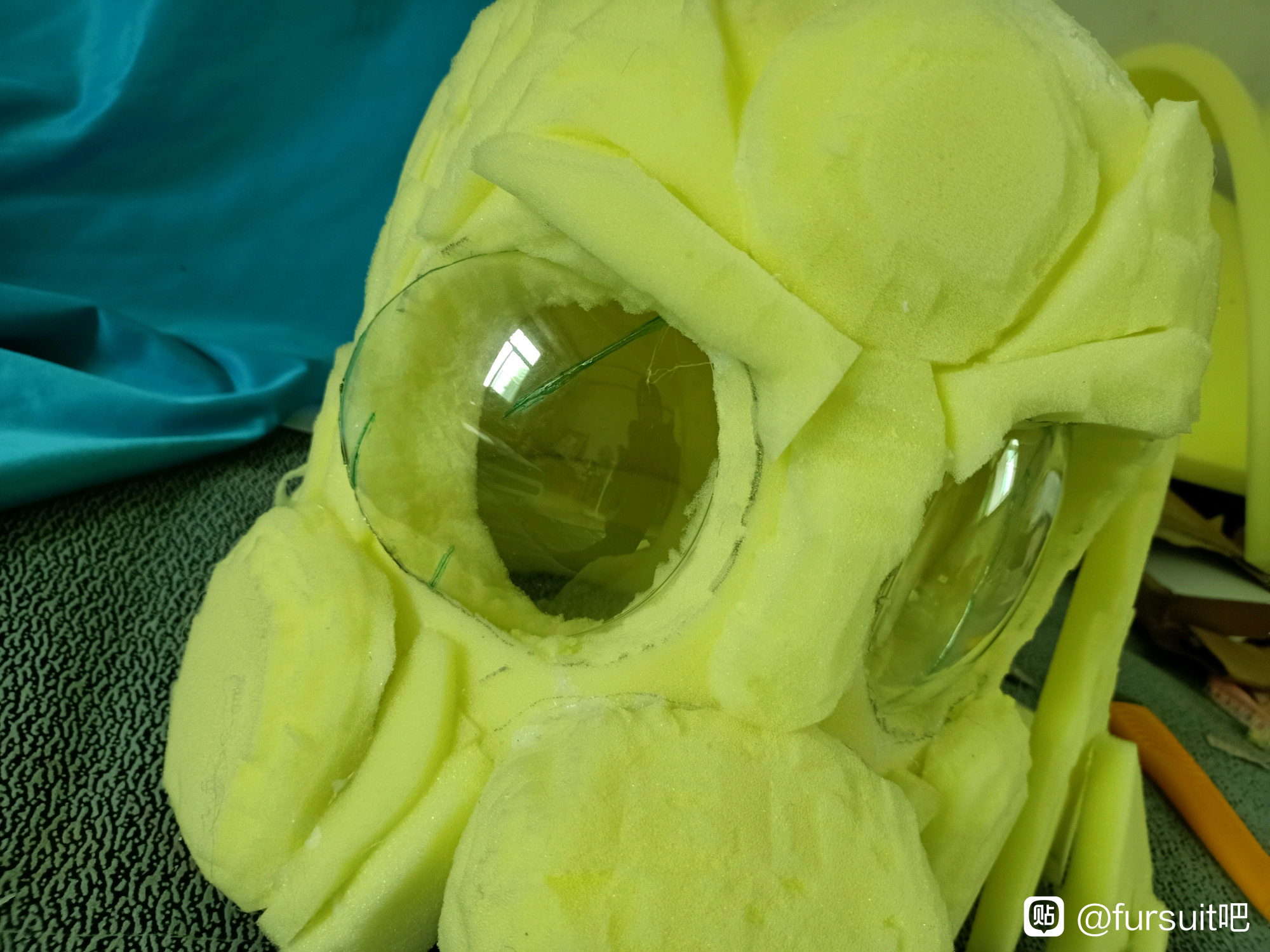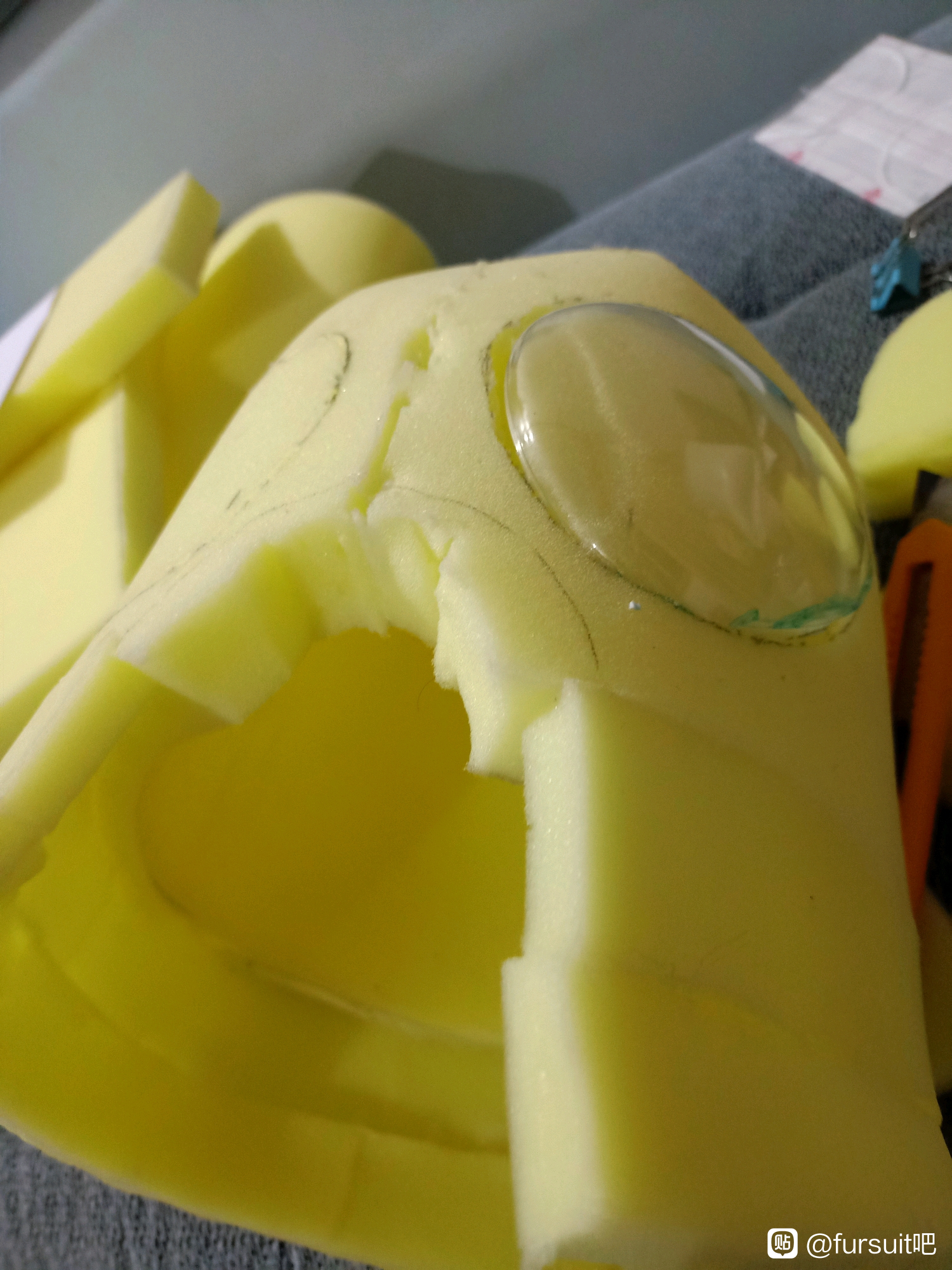 全程剪刀美工刀,海绵切都不正……镜片用美工刀加打火机也有点裂了(⁄ ⁄•⁄ω⁄•⁄ ⁄)